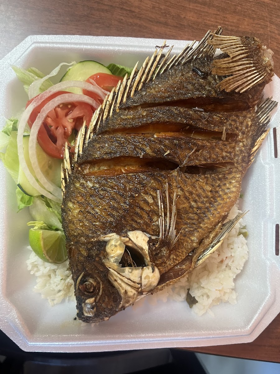 I recently ordered Mojarra Frita to go from a Salvadorian restaurant, and it was a delightful experience. The crispy fried fish was perfectly seasoned, and the golden exterior gave a satisfying crunch with every bite. The dish was served with a side of fresh salsa and tangy pickled vegetables, adding a burst of flavor to complement the fish. The portion size was generous, making it a great value for the price. Overall, Mojarra Frita is a must-try for anyone looking to savor authentic Salvadorian cuisine, and this takeout version did not disappoint.
